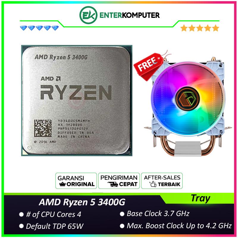 AMD Ryzen 5 3400G 3.7Ghz Up To 4.2Ghz Cache 4MB 65W AM4 [Tray] - 4 Core - NEW UNIT - 1 Years Warranty Replacement (with CUBE GAMING WIND V2 - 2 Copper Heat Pipes - Mirror RGB TOP Cover - Gaming CPU Cooler Rainbow Led)