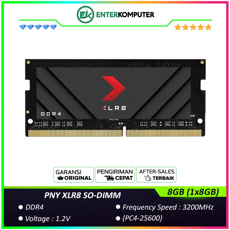PNY XLR8 SO-DIMM DDR4 PC25600 3200MHz 8GB (1x8GB) - MN8GSD43200XR-RB