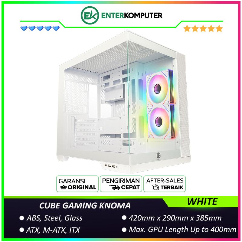 CUBE GAMING KNOMA WHITE - ATX Gaming Case - Front & Left Side Tempered Glass - USB Type C Included - Dust Filter - FREE 2Pcs 120mm Reverse Infinity Mirror ARGB Fan