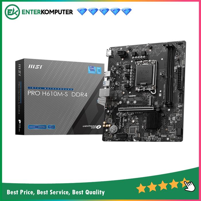 {"pcbuild_items":[],"KCODE":12,"PPRCZ":[1105000,1135000,-30000,2.64],"PDISP":1,"PLOLZ":["https:\/\/enterkomputer.com\/whatsapp?text=Hallo%2520Marketing%2520EnterKomputer...%2520Saya%2520ingin%2520order%2520produk%2520%252A_MSI%2520PRO%2520H610M-S%2520DDR4%2520%2528LGA1700%252C%2520H610%252C%2520DDR4%252C%2520USB3.2%252C%2520SATA3%2529_%252A%250A%252ASKU%253A%252A%2520188940%250A%252AHarga%253A%252A%2520Rp1.105.000%250A%250Ahttps%253A%252F%252Fenterkomputer.com%252Fdetail%252F188940%252FMSI-PRO-H610M-S-DDR4-LGA1700-H610-DDR4-USB32-SATA3","https:\/\/tokopedia.link\/kRfHKchy4Ib","","https:\/\/s.shopee.co.id\/7APRdTV577","","",""],"PSTTS":0,"PBEST":0,"PTYPE":"standard","PWGHT":1000,"PNAME":"MSI PRO H610M-S DDR4 (LGA1700, H610, DDR4, USB3.2, SATA3)","PCODE":188940,"PLINK":"MSI-PRO-H610M-S-DDR4-LGA1700-H610-DDR4-USB32-SATA3","PDTLS":"","PIMGZ":["https:\/\/images.tokopedia.net\/img\/cache\/700\/VqbcmM\/2024\/4\/20\/34d9e2d0-aa76-45db-a2a3-3907a3f7818a.jpg"],"shop_message":"Enter Komputer Libur Lebaran dari tanggal 18 - 25 Maret 2026, dan buka kembali pada 26 Maret 2026"}