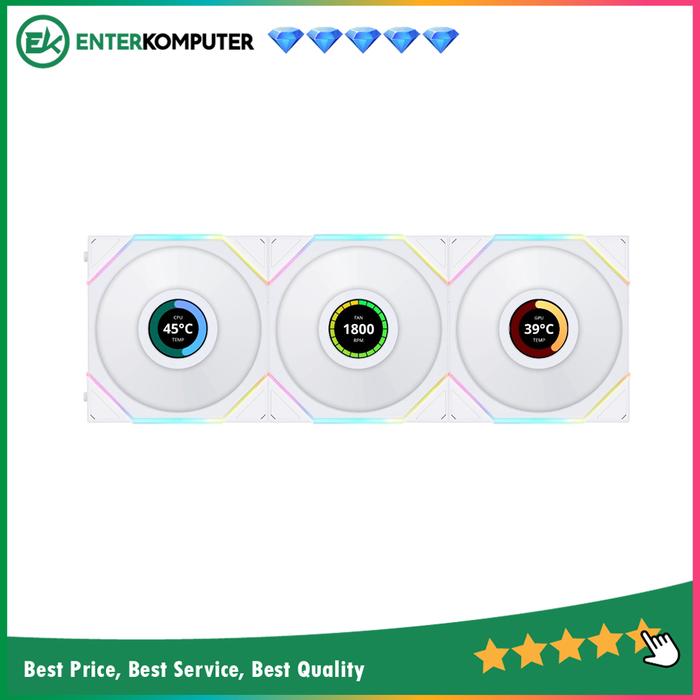 LIAN LI UNI FAN TL LCD120 WHITE Triple Pack with 1.6” LCD SCREEN & Controller - Dual Zone Lighting Effects - Empower with Customisable Display & Customisable Fan Speed - Dazzle with Infinity Mirror