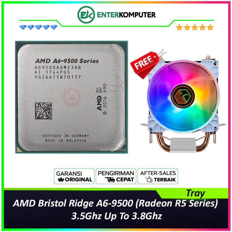 amd bristol ridge a6 9500 radeon r5 series 35ghz up to 38ghz cache 1mb 65w socket am4 tray 3 core new unit with cube gaming wind v2 2 copper heat pipes mirror rgb top cover gaming cpu cooler rainbow led 1 years warranty replacement