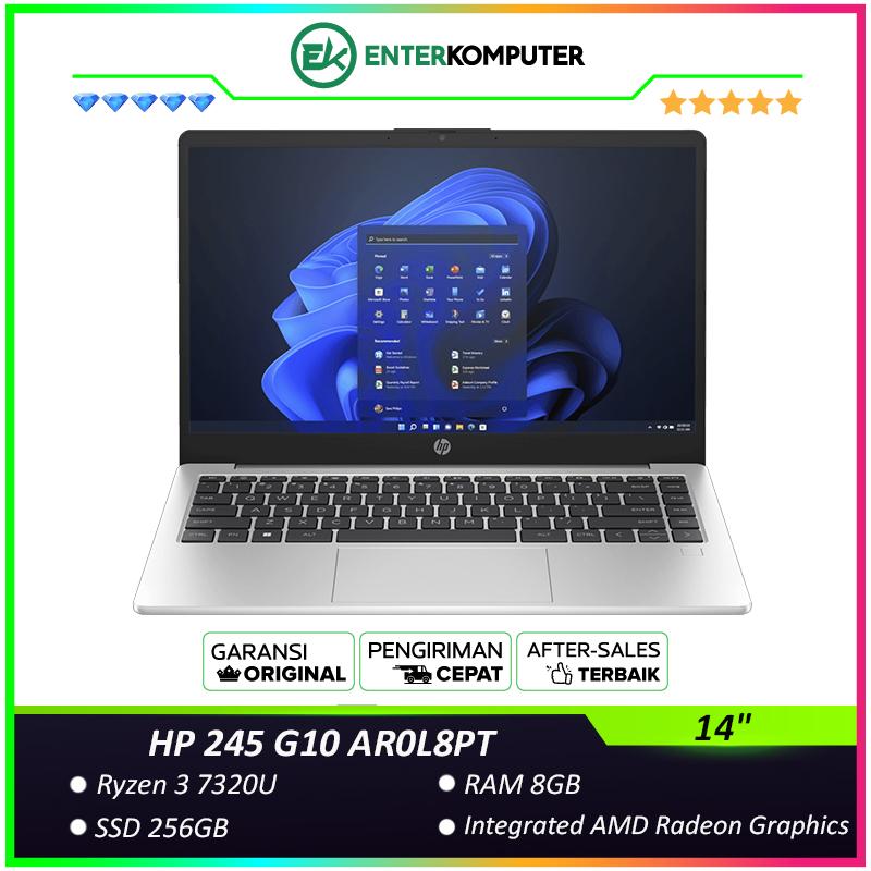 {"pcbuild_items":[],"KCODE":14,"PPRCZ":[5250000,5050000,200000,0],"PDISP":1,"PLOLZ":["https:\/\/enterkomputer.com\/whatsapp?text=Hallo%2520Marketing%2520EnterKomputer...%2520Saya%2520ingin%2520order%2520produk%2520%252A_HP%2520245%2520G10%2520AR0L8PT_%252A%250A%252ASKU%253A%252A%2520194240%250A%252AHarga%253A%252A%2520Rp5.250.000%250A%250Ahttps%253A%252F%252Fenterkomputer.com%252Fdetail%252F194240%252FHP-245-G10-AR0L8PT","https:\/\/www.tokopedia.com\/enterkomputer\/hp-245-g10-ar0l8pt-ryzen-3-7320u-ram-8gb-14-fhd-1730968478398187484","","https:\/\/shopee.co.id\/product\/43570421\/29728781019\/","","https:\/\/www.blibli.com\/p\/hp-245-g10-ar0l8pt-ryzen-3-7320u-ram-8gb-14-fhd\/ps--ENK-70018-02962",""],"PSTTS":0,"PBEST":1,"PTYPE":"standard","PWGHT":4000,"PNAME":"HP 245 G10 AR0L8PT","PCODE":194240,"PLINK":"HP-245-G10-AR0L8PT","PDTLS":"AMD Ryzen 3 7320U, RAM 8GB, SSD 256GB, Integrated AMD Radeon Graphics, 14 FHD, Win 11 Home","PIMGZ":["https:\/\/images.tokopedia.net\/img\/cache\/900\/VqbcmM\/2025\/3\/6\/91bb745b-4fcd-4abe-af92-1b6bda2d55a0.jpg"],"shop_message":"Enter Komputer Libur Lebaran dari tanggal 18 - 25 Maret 2026, dan buka kembali pada 26 Maret 2026"}