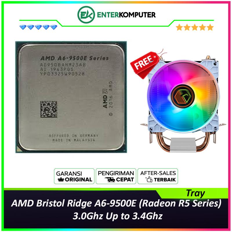 AMD Bristol Ridge A6-9500E (Radeon R5 Series) 3.0Ghz Up to 3.4Ghz Cache 1MB 35W Socket AM4 [Tray] - 2 Core - NEW UNIT (with CUBE GAMING WIND V2 - 2 Copper Heat Pipes - Mirror RGB TOP Cover - Gaming CPU Cooler Rainbow Led) - 1 Years Warranty Replacement