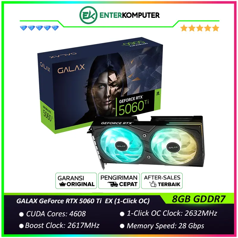 {"pcbuild_items":[],"KCODE":24,"PPRCZ":[8150000,7150000,1000000,0],"PDISP":1,"PLOLZ":["https:\/\/enterkomputer.com\/whatsapp?text=Hallo%2520Marketing%2520EnterKomputer...%2520Saya%2520ingin%2520order%2520produk%2520%252A_GALAX%2520GeForce%2520RTX%25205060%2520Ti%25208GB%2520GDDR7%2520EX%2520%25281-Click%2520OC%2529%2520-%2520ARGB%2520LIGHTING%2520OVERHAUL%2520-%2520DUAL%2520FAN%2520-%2520Garansi%25203%2520Thn_%252A%250A%252ASKU%253A%252A%2520195130%250A%252AHarga%253A%252A%2520Rp8.150.000%250A%250Ahttps%253A%252F%252Fenterkomputer.com%252Fdetail%252F195130%252FGALAX-GeForce-RTX-5060-Ti-8GB-GDDR7-EX-1-Click-OC-ARGB-LIGHTING-OVERHAUL-DUAL-FAN-Garansi-3-Thn","https:\/\/www.tokopedia.com\/enterkomputer\/galax-geforce-rtx-5060-ti-8gb-gddr7-ex-1-click-oc-argb-lighting-overhaul-dual-fan-1731576855491479120","","https:\/\/shopee.co.id\/product\/43570421\/42603079481\/","","https:\/\/www.blibli.com\/p\/product-detail\/ps--ENK-70018-02935",""],"PSTTS":0,"PBEST":0,"PTYPE":"standard","PWGHT":1700,"PNAME":"GALAX GeForce RTX 5060 Ti 8GB GDDR7 EX (1-Click OC) - ARGB LIGHTING OVERHAUL - DUAL FAN - Garansi 3 Thn","PCODE":195130,"PLINK":"GALAX-GeForce-RTX-5060-Ti-8GB-GDDR7-EX-1-Click-OC-ARGB-LIGHTING-OVERHAUL-DUAL-FAN-Garansi-3-Thn","PDTLS":"","PIMGZ":["https:\/\/p16-oec-sg.ibyteimg.com\/tos-alisg-i-aphluv4xwc-sg\/ce6159e7085c4105a818c576fd618a3d~tplv-aphluv4xwc-resize-webp:800:800.webp?dr=15584&t=555f072d&ps=933b5bde&shp=6ce186a1&shcp=e1be8f53&idc=maliva&from=1826719393"],"shop_message":"Enter Komputer Libur Lebaran dari tanggal 18 - 25 Maret 2026, dan buka kembali pada 26 Maret 2026"}