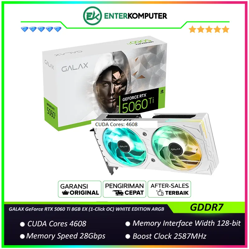 {"pcbuild_items":[],"KCODE":24,"PPRCZ":[8250000,7250000,1000000,0],"PDISP":1,"PLOLZ":["https:\/\/enterkomputer.com\/whatsapp?text=Hallo%2520Marketing%2520EnterKomputer...%2520Saya%2520ingin%2520order%2520produk%2520%252A_GALAX%2520GeForce%2520RTX%25205060%2520Ti%25208GB%2520GDDR7%2520EX%2520%25281-Click%2520OC%2529%2520WHITE%2520EDITION%2520-%2520ARGB%2520LIGHTING%2520OVERHAUL%2520-%2520DUAL%2520FAN%2520-%2520Garansi%25203%2520Thn_%252A%250A%252ASKU%253A%252A%2520195131%250A%252AHarga%253A%252A%2520Rp8.250.000%250A%250Ahttps%253A%252F%252Fenterkomputer.com%252Fdetail%252F195131%252FGALAX-GeForce-RTX-5060-Ti-8GB-GDDR7-EX-1-Click-OC-WHITE-EDITION-ARGB-LIGHTING-OVERHAUL-DUAL-FAN-Garansi-3-Thn","https:\/\/www.tokopedia.com\/enterkomputer\/galax-geforce-rtx-5060-ti-8gb-gddr7-ex-1-click-oc-white-edition-argb-lighting-overhaul-dual-fan-1731765788303132240","","https:\/\/shopee.co.id\/product\/43570421\/41405969102\/","","",""],"PSTTS":0,"PBEST":0,"PTYPE":"standard","PWGHT":1700,"PNAME":"GALAX GeForce RTX 5060 Ti 8GB GDDR7 EX (1-Click OC) WHITE EDITION - ARGB LIGHTING OVERHAUL - DUAL FAN - Garansi 3 Thn","PCODE":195131,"PLINK":"GALAX-GeForce-RTX-5060-Ti-8GB-GDDR7-EX-1-Click-OC-WHITE-EDITION-ARGB-LIGHTING-OVERHAUL-DUAL-FAN-Garansi-3-Thn","PDTLS":"","PIMGZ":["https:\/\/p16-oec-sg.ibyteimg.com\/tos-alisg-i-aphluv4xwc-sg\/7078fc42ed4e406eba7ab9c2fe3990ef~tplv-aphluv4xwc-resize-webp:800:800.webp?dr=15584&t=555f072d&ps=933b5bde&shp=6ce186a1&shcp=e1be8f53&idc=maliva&from=1826719393"],"shop_message":"Enter Komputer Libur Lebaran dari tanggal 18 - 25 Maret 2026, dan buka kembali pada 26 Maret 2026"}