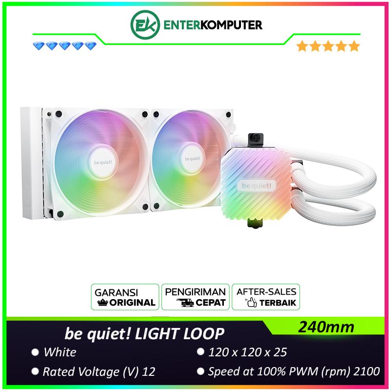 be quiet light loop 240mm white peak performance and lighting impressively high cooling performance with uniquely illuminated argb cooling block 2x light wings lx 120mm pwm high speed white