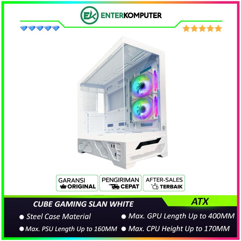 CUBE GAMING SLAN WHITE - ATX Gaming Case - All White Inside - Digital CPU/GPU Screen Display - Front & Left Side Tempered Glass - Airflow Potential - PSU Cover - Dust Filter - FREE 2Pcs 120mm Reverse Infinity Mirror ARGB Fan