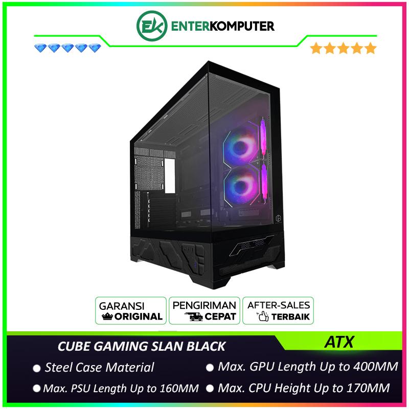 CUBE GAMING SLAN BLACK - ATX Gaming Case - Digital CPU/GPU Screen Display - Front & Left Side Tempered Glass - Airflow Potential - PSU Cover - Dust Filter - FREE 2Pcs 120mm Reverse Infinity Mirror ARGB Fan