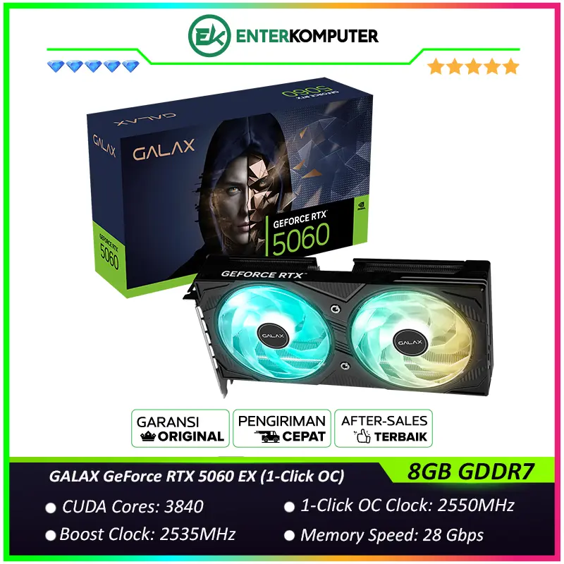 {"pcbuild_items":[],"KCODE":24,"PPRCZ":[7050000,6050000,1000000,0],"PDISP":1,"PLOLZ":["https:\/\/enterkomputer.com\/whatsapp?text=Hallo%2520Marketing%2520EnterKomputer...%2520Saya%2520ingin%2520order%2520produk%2520%252A_GALAX%2520GeForce%2520RTX%25205060%25208GB%2520GDDR7%2520EX%2520%25281-Click%2520OC%2529%2520-%2520ARGB%2520LIGHTING%2520OVERHAUL%2520-%2520DUAL%2520FAN%2520-%2520Garansi%25203%2520Thn_%252A%250A%252ASKU%253A%252A%2520195936%250A%252AHarga%253A%252A%2520Rp7.050.000%250A%250Ahttps%253A%252F%252Fenterkomputer.com%252Fdetail%252F195936%252FGALAX-GeForce-RTX-5060-8GB-GDDR7-EX-1-Click-OC-ARGB-LIGHTING-OVERHAUL-DUAL-FAN-Garansi-3-Thn","https:\/\/www.tokopedia.com\/enterkomputer\/galax-geforce-rtx-5060-8gb-gddr7-ex-1-click-oc-argb-lighting-overhaul-dual-fan-1731576675756574288","","https:\/\/shopee.co.id\/product\/43570421\/40803067229\/","","https:\/\/www.blibli.com\/p\/product-detail\/ps--ENK-70018-02934",""],"PSTTS":0,"PBEST":0,"PTYPE":"standard","PWGHT":1800,"PNAME":"GALAX GeForce RTX 5060 8GB GDDR7 EX (1-Click OC) - ARGB LIGHTING OVERHAUL - DUAL FAN - Garansi 3 Thn","PCODE":195936,"PLINK":"GALAX-GeForce-RTX-5060-8GB-GDDR7-EX-1-Click-OC-ARGB-LIGHTING-OVERHAUL-DUAL-FAN-Garansi-3-Thn","PDTLS":"","PIMGZ":["https:\/\/p16-oec-sg.ibyteimg.com\/tos-alisg-i-aphluv4xwc-sg\/a1bb54b0ec9e435d8e2ebe3ce80fb136~tplv-aphluv4xwc-resize-webp:800:800.webp?dr=15584&t=555f072d&ps=933b5bde&shp=6ce186a1&shcp=e1be8f53&idc=maliva&from=1826719393"],"shop_message":"Enter Komputer Libur Lebaran dari tanggal 18 - 25 Maret 2026, dan buka kembali pada 26 Maret 2026"}