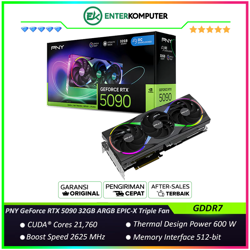 PNY GeForce RTX 5090 32GB GDDR7 ARGB EPIC-X RGB OC Triple Fan