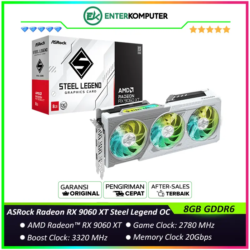 ASRock Radeon RX 9060 XT 8GB GDDR6 Steel Legend OC