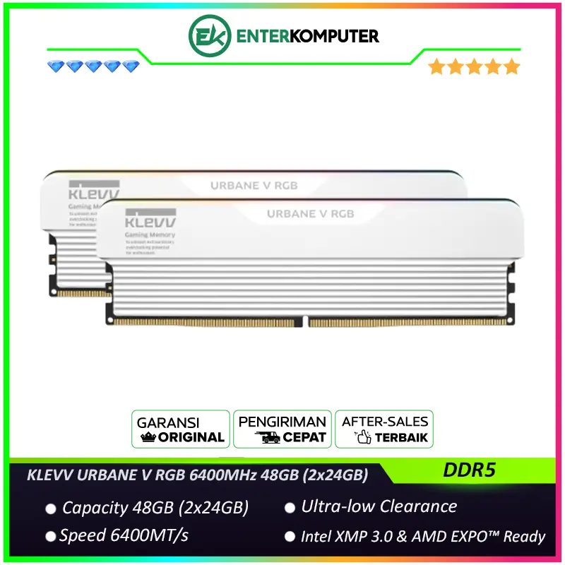 KLEVV URBANE V RGB DDR5 PC51200 6400MHz 48GB (2x24GB) 32-38-38-78 - KD5KGUD80-64A320M