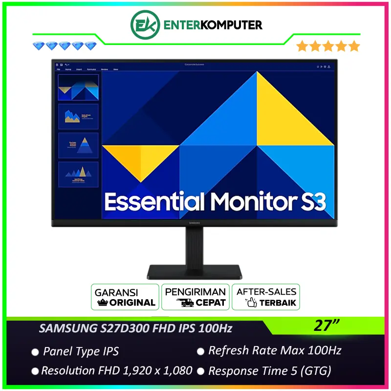 {"pcbuild_items":[],"KCODE":9,"PPRCZ":[1550000,1500000,50000,0],"PDISP":1,"PLOLZ":["https:\/\/enterkomputer.com\/whatsapp?text=Hallo%2520Marketing%2520EnterKomputer...%2520Saya%2520ingin%2520order%2520produk%2520%252A_Samsung%2520S27D300%252027%2520FHD%2520IPS%2520100Hz%2520-%2520Response%2520Time%25205ms_%252A%250A%252ASKU%253A%252A%2520196148%250A%252AHarga%253A%252A%2520Rp1.550.000%250A%250Ahttps%253A%252F%252Fenterkomputer.com%252Fdetail%252F196148%252FSamsung-S27D300-27-FHD-IPS-100Hz-Response-Time-5ms","https:\/\/www.tokopedia.com\/enterkomputer\/samsung-s27d300-27-fhd-ips-100hz-response-time-5ms-monitor-27-inch-1731687876899604048","","https:\/\/shopee.co.id\/product\/43570421\/40804671347\/","","",""],"PSTTS":1,"PBEST":0,"PTYPE":"standard","PWGHT":9000,"PNAME":"Samsung S27D300 27 FHD IPS 100Hz - Response Time 5ms","PCODE":196148,"PLINK":"Samsung-S27D300-27-FHD-IPS-100Hz-Response-Time-5ms","PDTLS":"","PIMGZ":["https:\/\/p16-oec-sg.ibyteimg.com\/tos-alisg-i-aphluv4xwc-sg\/e98167f8e9a14427acd20cddac097901~tplv-aphluv4xwc-resize-webp:800:800.webp?dr=15584&t=555f072d&ps=933b5bde&shp=6ce186a1&shcp=e1be8f53&idc=maliva&from=1826719393"],"shop_message":"Enter Komputer Libur Lebaran dari tanggal 18 - 25 Maret 2026, dan buka kembali pada 26 Maret 2026"}