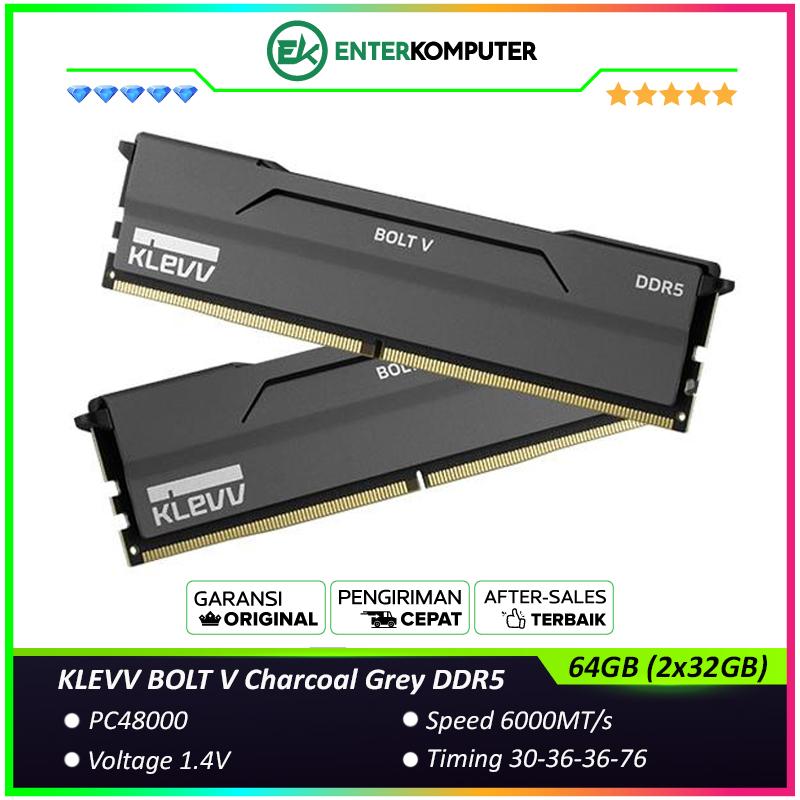 KLEVV BOLT V Charcoal Grey DDR5 PC48000 6000MHz 64GB (2x32GB) 30-36-36-76 - KD5BGUA80-60A300H