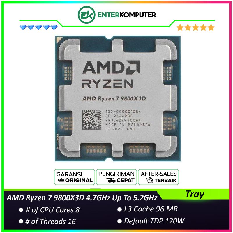 {"pcbuild_items":[],"KCODE":17,"PPRCZ":[7595000,7500000,95000,0],"PDISP":1,"PLOLZ":["https:\/\/enterkomputer.com\/whatsapp?text=Hallo%2520Marketing%2520EnterKomputer...%2520Saya%2520ingin%2520order%2520produk%2520%252A_AMD%2520Ryzen%25207%25209800X3D%25204.7GHz%2520Up%2520To%25205.2GHz%2520Cache%252096MB%2520120W%2520AM5%2520%255BTray%255D%2520-%25208%2520Core%2520-%2520NEW%2520UNIT%2520-%25201%2520Years%2520Warranty%2520Replacement_%252A%250A%252ASKU%253A%252A%2520197405%250A%252AHarga%253A%252A%2520Rp7.595.000%250A%250Ahttps%253A%252F%252Fenterkomputer.com%252Fdetail%252F197405%252FAMD-Ryzen-7-9800X3D-47GHz-Up-To-52GHz-Cache-96MB-120W-AM5-Tray-8-Core-NEW-UNIT-1-Years-Warranty-Replacement","https:\/\/www.tokopedia.com\/enterkomputer\/amd-ryzen-7-9800x3d-4-7ghz-up-to-5-2ghz-cache-96mb-120w-am5-tray-8-core-new-unit-1732279412764477008","","https:\/\/shopee.co.id\/product\/43570421\/42015146203\/","","",""],"PSTTS":0,"PBEST":0,"PTYPE":"standard","PWGHT":500,"PNAME":"AMD Ryzen 7 9800X3D 4.7GHz Up To 5.2GHz Cache 96MB 120W AM5 [Tray] - 8 Core - NEW UNIT - 1 Years Warranty Replacement","PCODE":197405,"PLINK":"AMD-Ryzen-7-9800X3D-47GHz-Up-To-52GHz-Cache-96MB-120W-AM5-Tray-8-Core-NEW-UNIT-1-Years-Warranty-Replacement","PDTLS":"","PIMGZ":["https:\/\/p16-oec-sg.ibyteimg.com\/tos-alisg-i-aphluv4xwc-sg\/59152a0656294f8d8775d54a2aedd593~tplv-aphluv4xwc-origin-jpeg.jpeg?dr=15568&from=520841845&idc=my2&ps=933b5bde&shcp=2c1af732&shp=1f0b6a75&t=555f072d"],"shop_message":"Enter Komputer Libur Lebaran dari tanggal 18 - 25 Maret 2026, dan buka kembali pada 26 Maret 2026"}