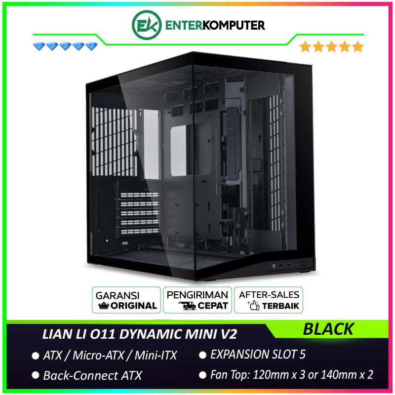 LIAN LI O11 DYNAMIC MINI V2 FLOW BLACK - Precision Resized - ATX Back-CONNECT Motherboards Compatible - 4MM Tempered Glass - USB Type C - Free 5Pcs Reverse Blade 120MM PWM Fans