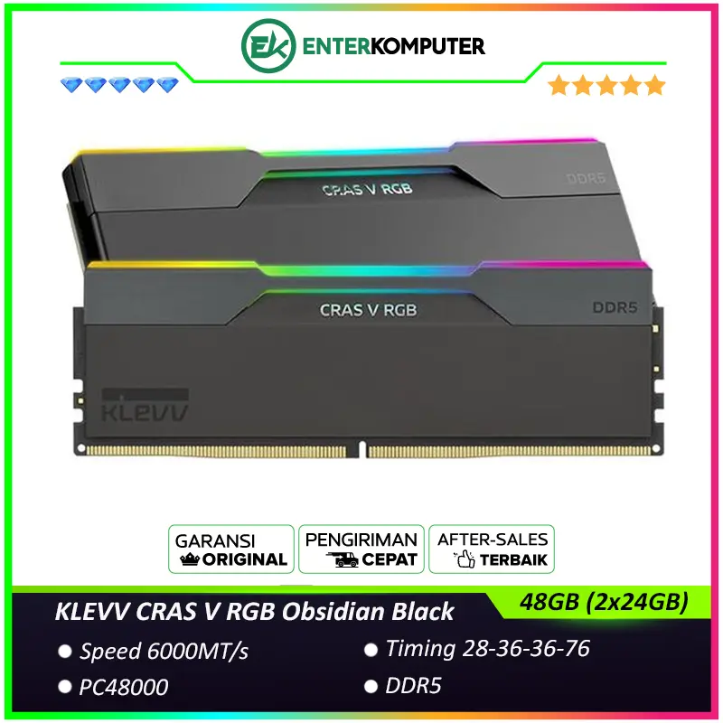 KLEVV CRAS V RGB Obsidian Black DDR5 PC48000 6000MHz 48GB (2x24GB) 28-36-36-76 - KD5KGUD80-60B280G