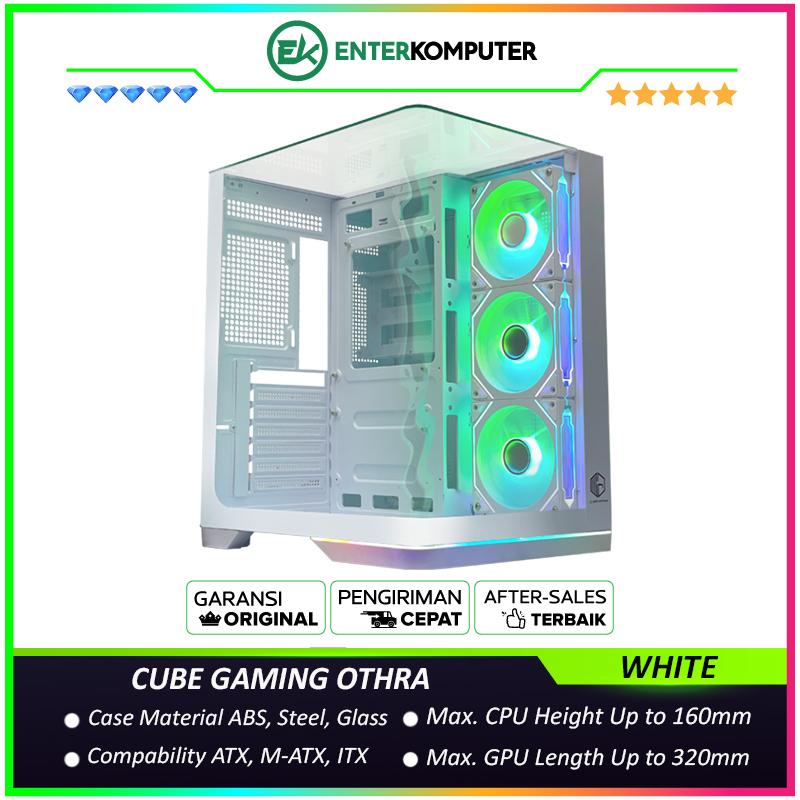 CUBE GAMING OTHRA WHITE - ATX Gaming Case - Panoramic View - Aesthetic Dual Chamber - Top & Front-Left Tempered Glass Curve Design with Bottom ARGB LED Strip - Airflow Potential - FREE 3Pcs 120mm Reverse Infinity Mirror ARGB Fan