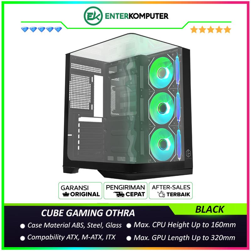 CUBE GAMING OTHRA BLACK - ATX Gaming Case - Panoramic View - Aesthetic Dual Chamber - Top & Front-Left Tempered Glass Curve Design with Bottom ARGB LED Strip - Airflow Potential - FREE 3Pcs 120mm Reverse Infinity Mirror ARGB Fan