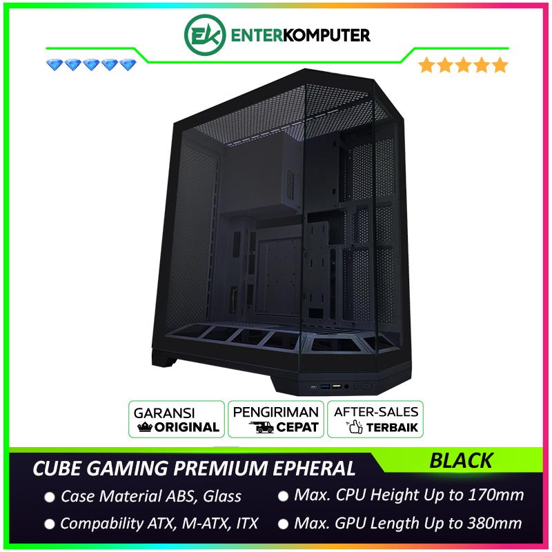 CUBE GAMING PREMIUM EPHERAL BLACK - ATX Gaming Case - UNIQUE FUTURISTIC DESIGN Dual Chamber - Panoramic View - BTF Mainboard Ready - Front & Left Side Tempered Glass and Tools Free - USB Type C Ready - Dust Filter