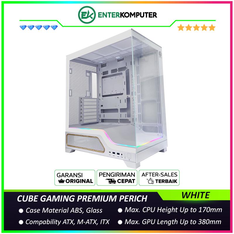 CUBE GAMING PREMIUM PERICH WHITE - ATX Gaming Case - Panoramic View - All White Inside - BTF Mainboard Ready - Front & Left Side Tempered Glass with Bottom ARGB LED Strip - USB Type C Ready - PSU Cover - Dust Filter