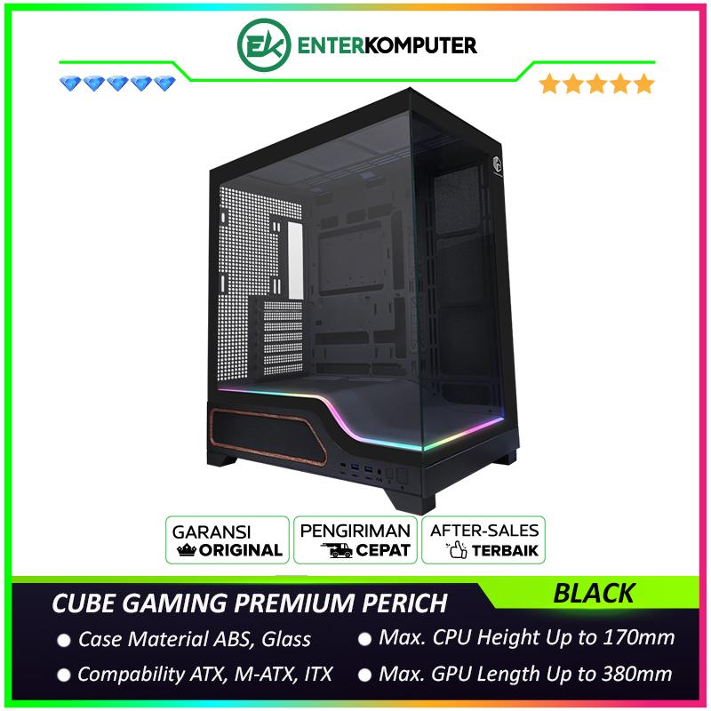 CUBE GAMING PREMIUM PERICH BLACK - ATX Gaming Case - Panoramic View - BTF Mainboard Ready - Front & Left Side Tempered Glass with Bottom ARGB LED Strip - USB Type C Ready - PSU Cover - Dust Filter