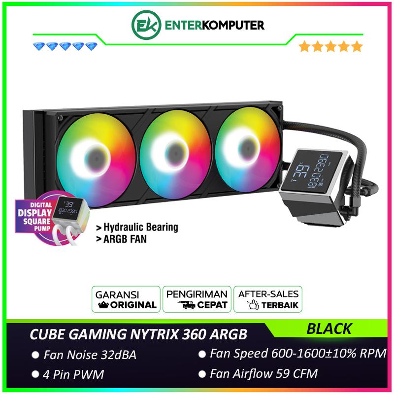 CUBE GAMING NYTRIX 360 ARGB BLACK PERFORMANCE FAN Liquid Cooler - 3.4 Display Screen - Magnetic Rotatable Square Pump Head with Rectange Digital Display