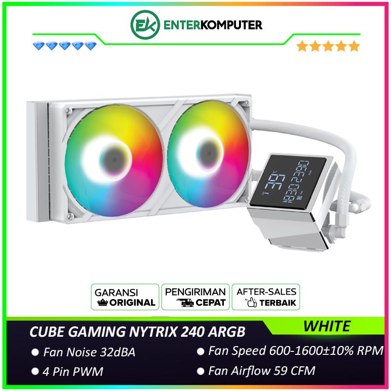 CUBE GAMING NYTRIX 240 ARGB WHITE PERFORMANCE FAN Liquid Cooler - 3.4 Display Screen - Magnetic Rotatable Square Pump Head with Rectange Digital Display