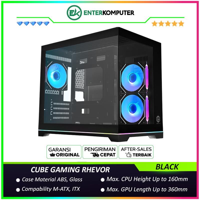 CUBE GAMING RHEVOR BLACK - mATX Gaming Case - Panoramic View - Aesthetic Mini Dual Chamber - Front & Left Side Tempered Glass with Bottom ARGB LED Strip - Dust Filter - FREE 2Pcs 120mm Reverse Infinity Mirror ARGB Fan + 1Pc 120mm Infinity Mirror ARGB Fan