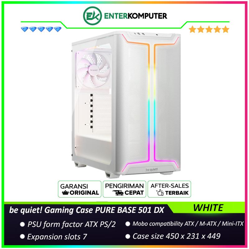 be quiet gaming case pure base 501 dx white impressive illuminated lighting with high airflow intake front panel and top cover for maximum performance free 3pcs pure wings 3 140mm pwm white fans type c 32 ready