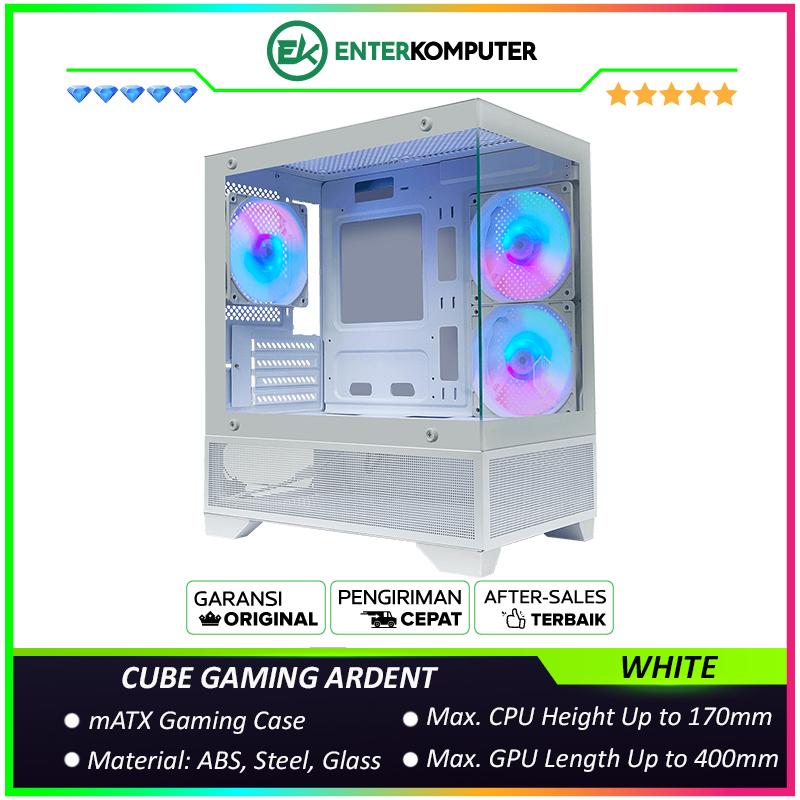 CUBE GAMING ARDENT WHITE - mATX Gaming Case - All White Inside - Front & Left Side Tempered Glass - Dust Filter - PSU Cover with Mesh Panel - FREE 3Pcs 120mm RGB Fan
