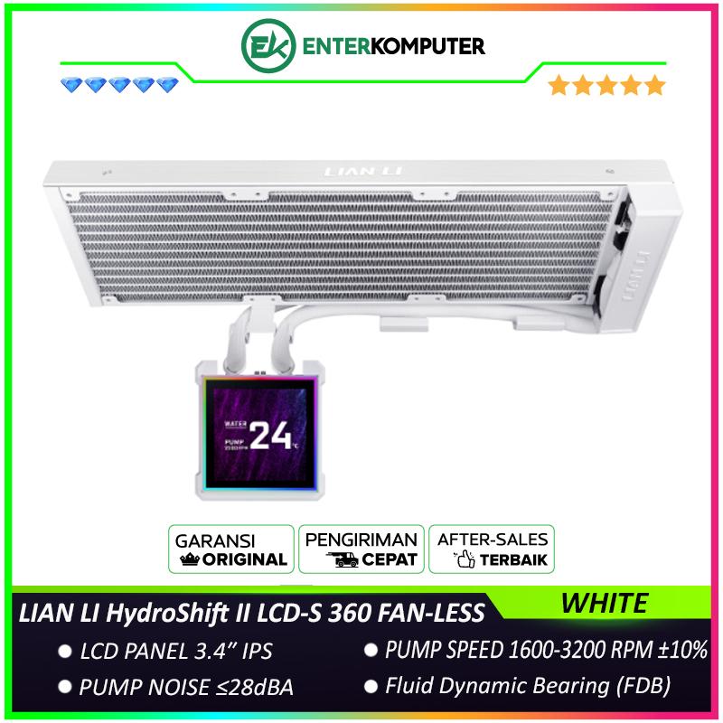 LIAN LI HydroShift II LCD-S 360 FAN-LESS WHITE with 3.4 IPS 60Hz LCD Screen - Improved Performance - Uniquely Cool, Now Reimagined - Magnetic Hot-swap Display - Side-Mounted Design with Optimized Cable Managment