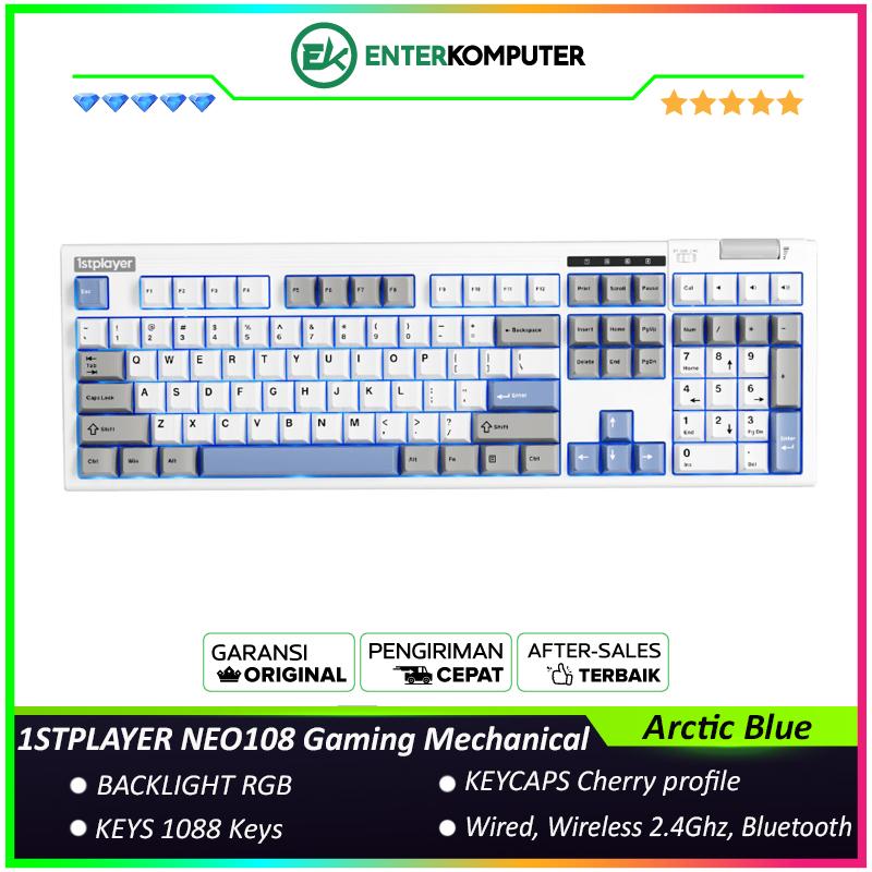 1STPLAYER NEO108 Arctic Blue Gaming Mechanical Keyboard 108 Keys Layout - Five-Layer Gasket Structure - Dynamic RGB Backlighting - Lavendar Switch - Full Key Hot-Swapping - Comfort-Designed Adjustment Wheel - RGB Accent Light Strip - NEO108-AB-TLD