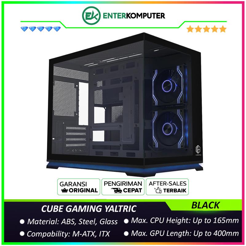 CUBE GAMING YALTRIC BLACK - mATX Gaming Case - Panoramic View - BTF Mainboard Ready - Front & Left Side Tempered Glass with Bottom ARGB LED Strip - FREE 2Pcs 120mm Reverse Infinity Mirror ARGB Fan