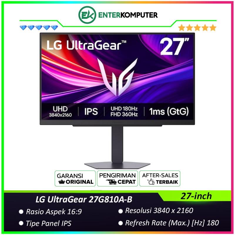 LG UltraGear 27G810A-B 27-inch Dual Mode 4K UHD 180Hz or FHD 360Hz IPS HDR400 Gaming Monitor