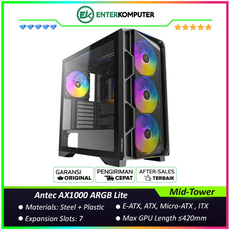 Antec AX1000 ARGB Lite - Mid-Tower Gaming Case - Sleek Geometric Design with Full-View Side - Tool-Free Panel Design - Tempered Glass Side Panel - FREE 3PCS 120mm ARGB Fans + 1PCS 120mm ARGB Fans