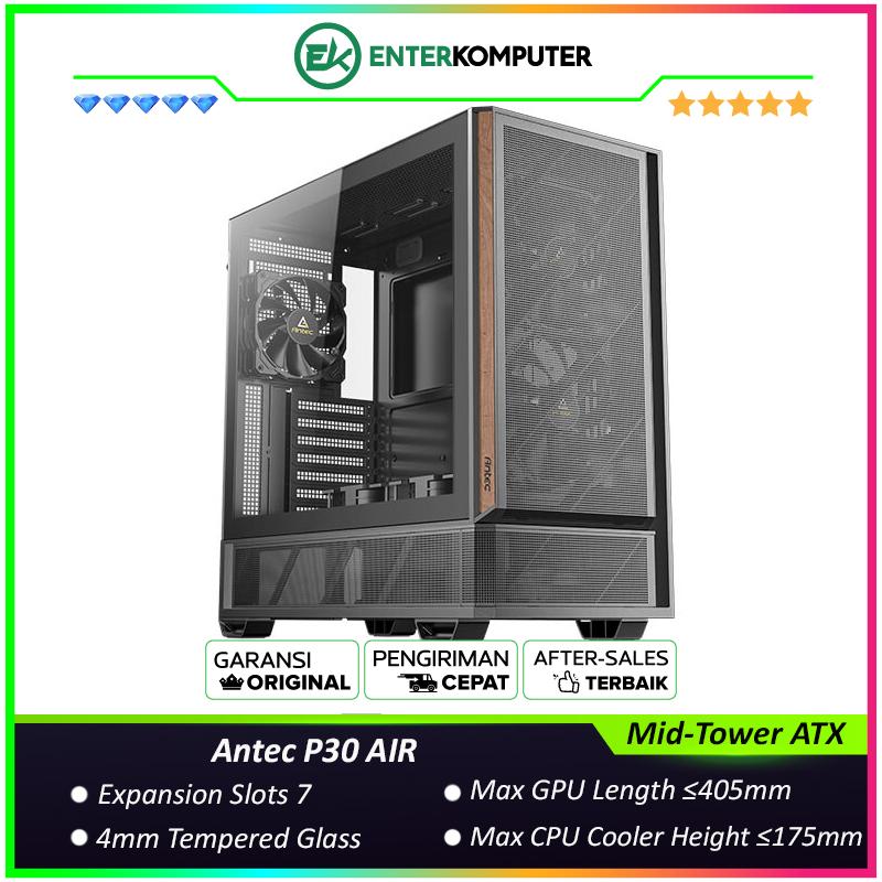 antec p30 air mid tower atx gaming case metal mesh meets premium wood type c 32 gen 2 ready 4mm tempered glass side panel free 2pcs 140mm pwm fans 1pc 120mm pwm fan 2pcs 120mm pwm reverse fans