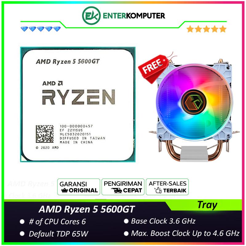 AMD Ryzen 5 5600GT 3.6Ghz Up To 4.6Ghz Cache 16MB 65W AM4 [Tray] - 6 Core - NEW UNIT - 1 Years Warranty Replacement (with CUBE GAMING WIND V2 - 2 Copper Heat Pipes - Mirror RGB TOP Cover - Gaming CPU Cooler Rainbow Led)