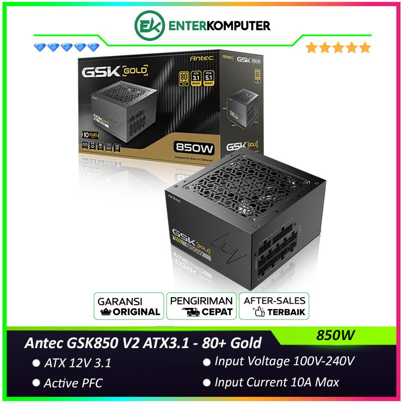 Antec GSK850 V2 ATX3.1 850W - 80+ Gold Certified - Full Modular - ATX3.1 and PCIe 5.1 Ready - High-Quality Braided Cable - Japanese Main Capacitors - 10 Years Warranty
