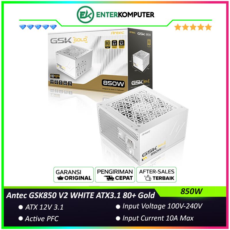 Antec GSK850 V2 WHITE ATX3.1 850W - 80+ Gold Certified - Full Modular - ATX3.1 and PCIe 5.1 Ready - High-Quality Braided Cable - Japanese Main Capacitors - 10 Years Warranty