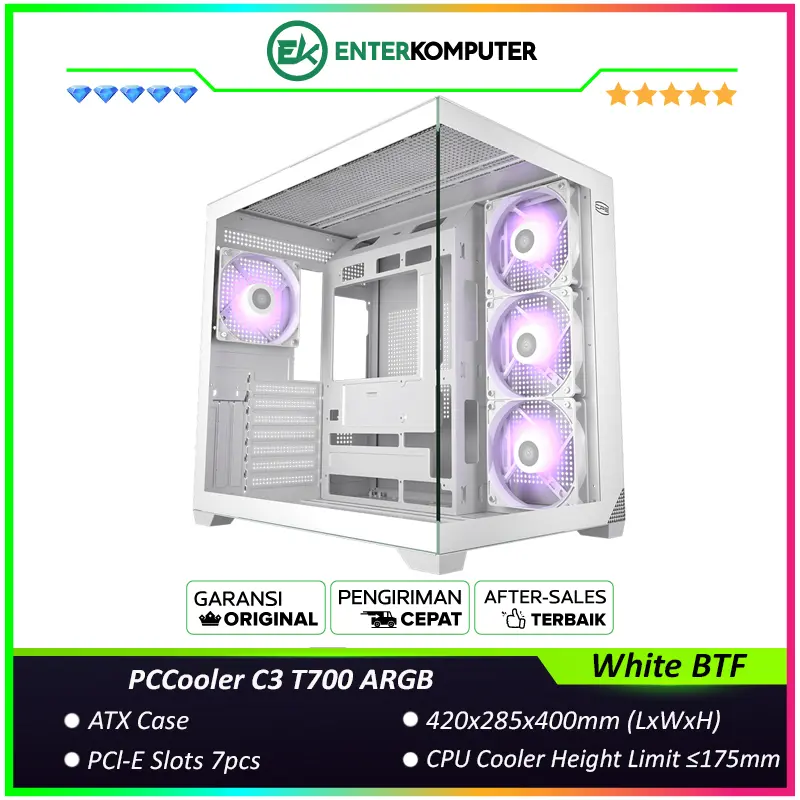 PCCooler C3 T700 ARGB White BTF Panoramic Window Case