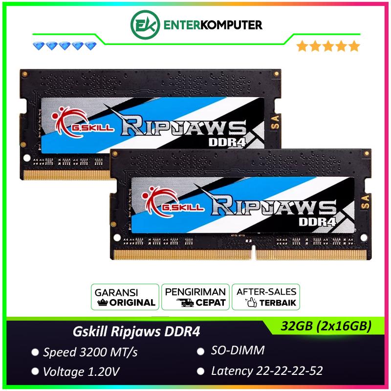 Gskill Ripjaws SO-DIMM DDR4 PC25600 3200MHz 32GB (2x16GB) 22-22-22-52 - F4-3200C22D-32GRS