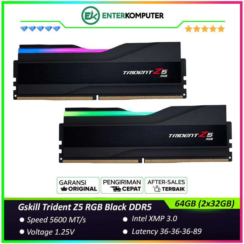 Gskill Trident Z5 RGB Black DDR5 PC44800 5600MHz 64GB (2x32GB) 36-36-36-89 - F5-5600J3636D32GX2-TZ5RK